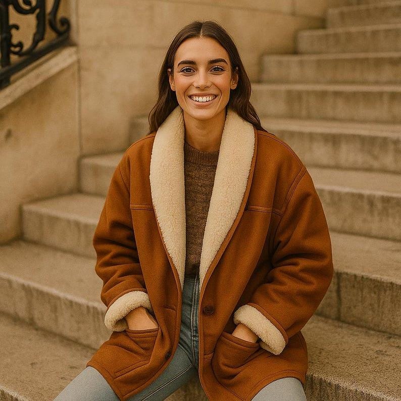 Whether you're strolling through snowy streets or heading to a winter cabin getaway, this retro-style sheepskin jacket will keep you both cozy and classy. Ideal as a statement piece or functional winter outerwear, this coat is designed to last for years.